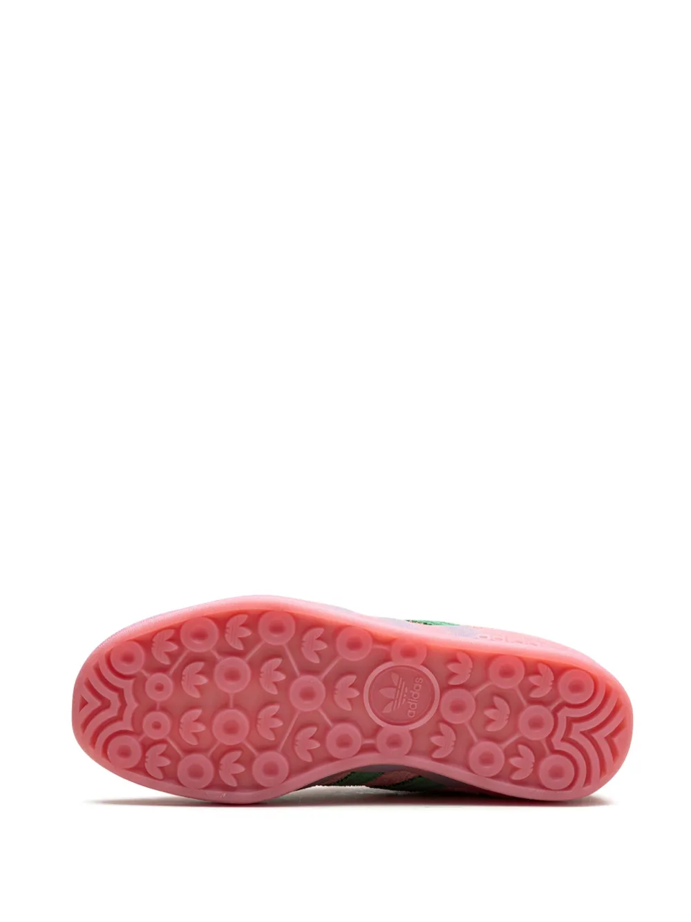 Cholewka wykonana jest z jasnoróżowego, dłuższego zamszu, który nadaje im unikalnej tekstury. Kontrastowe detale, takie jak T-toe overlay, panel sznurowania i pięta w odcieniu Pale Scarlet, podkreślają dynamiczny charakter modelu. Trzy ząbkowane paski adidas wykonane z zielonego zamszu dodają nieoczywistego kontrastu, przyciągając wzrok. Całość uzupełniają jasnoróżowe sznurowadła i dopasowana kolorystycznie wyściółka.